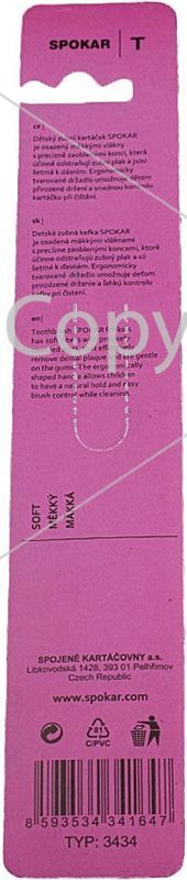 Виготовлена з урахуванням ортодонтичних особливостей дітей віком від 5 до 8 років зубна щітка «Т» від бренда Spokar стане найкращим другом вашої дитини під час щоденної гігієнічної процедури. Вона ефективно справляється з очищенням усієї ротової порожнини, не травмує емаль і є дуже ергономічною. Аксесуар лаконічного дизайну та прикрашений мультяшним зображенням милого кошеня.