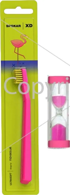 Дитяча зубна щітка Spokar XD Ultrasoft з пісочним годинником Рожево-жовта (8593534342156_рожево-жовта_з пісочним годинником)