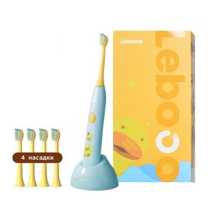 Дитяча звукова зубна щітка Lebooo YOYO Блакитна от 4 лет 4 насадки