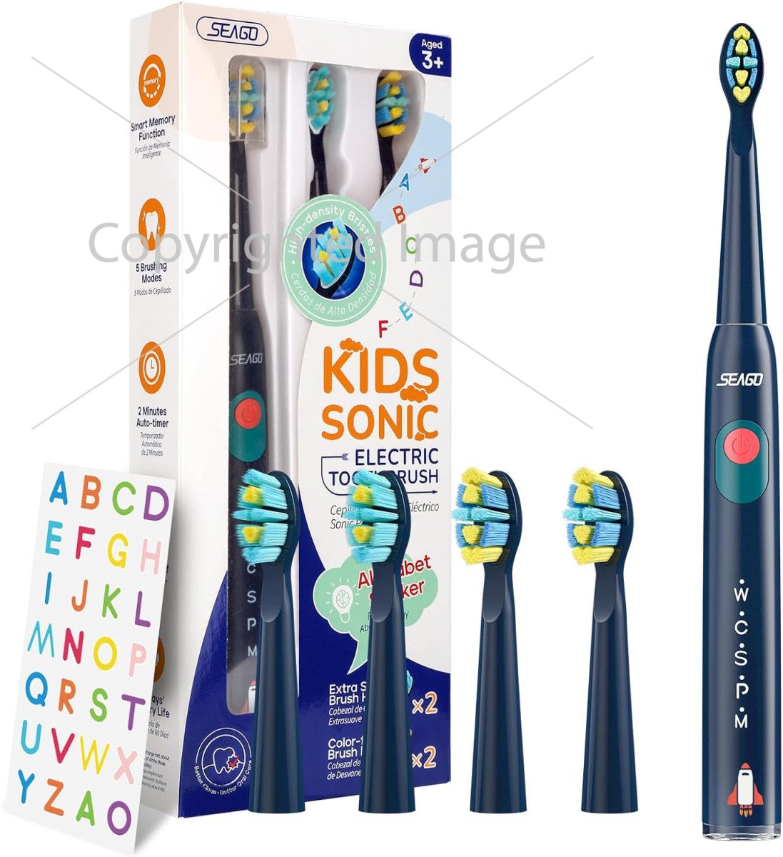 Дитяча звукова зубна щітка Seago SG2303 Синя від 3 років 4 насадки