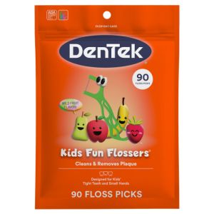 Веселі флоси з тримачами DenTek мають зручний, оптимальний дизайн і форму для ручки дитини і легко дістають до всіх зубів.