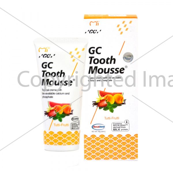 GC Tooth Mousse – це смачний крем, який ще й корисний для зубів. До складу крему Тусс Мусс входять кальцій та фосфати, основні мінерали зубів. Мінерали представлені у розчинній формі, спеціальному молочку - отриманий білок, відомий як Recaldent ТМ (СРР-АСР).