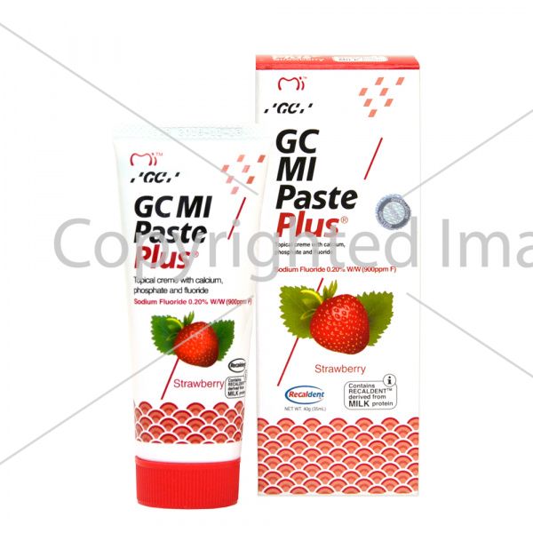Подібно до GC Tooth Mousse, MI PASTE PLUS містить Recaldent TM (СРР-АСР), а також додатковий компонент - фторид (CPP-ACPF: казеїн фосфопептид-аморфний фосфат кальцію фторид). Роль фтору в зміцненні та захисті зубів вже давно визнається, тому що контрольоване поглинання фториду в зубах сприяє розвитку більш сильної та стійкої структури зуба до кислот.