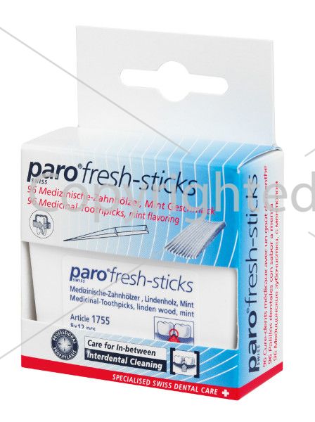 paro® FRESH-STICKS - Освіжаючі, дерев'яні, середнього розміру зубочистки зі свіжим м'ятним смаком.