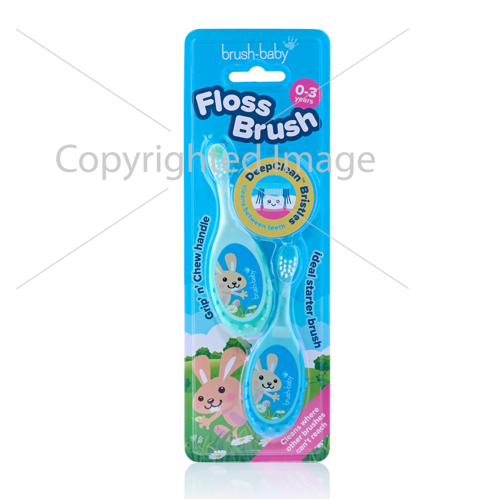 Набір дитячих зубних щіток Brush Baby Flossbrush до 3 років блакитна і зелена 2 шт