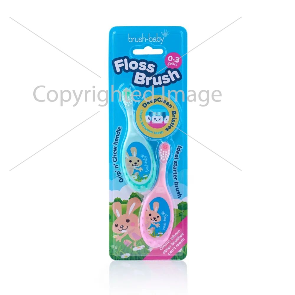 Набір дитячих зубних щіток Brush Baby Flossbrush до 3 років рожева і зелена 2 шт