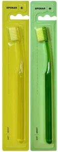 Набір зубних щіток Spokar Plus М'яка Жовта + Зелена 2 шт (8593534341807_жовто_зелена)