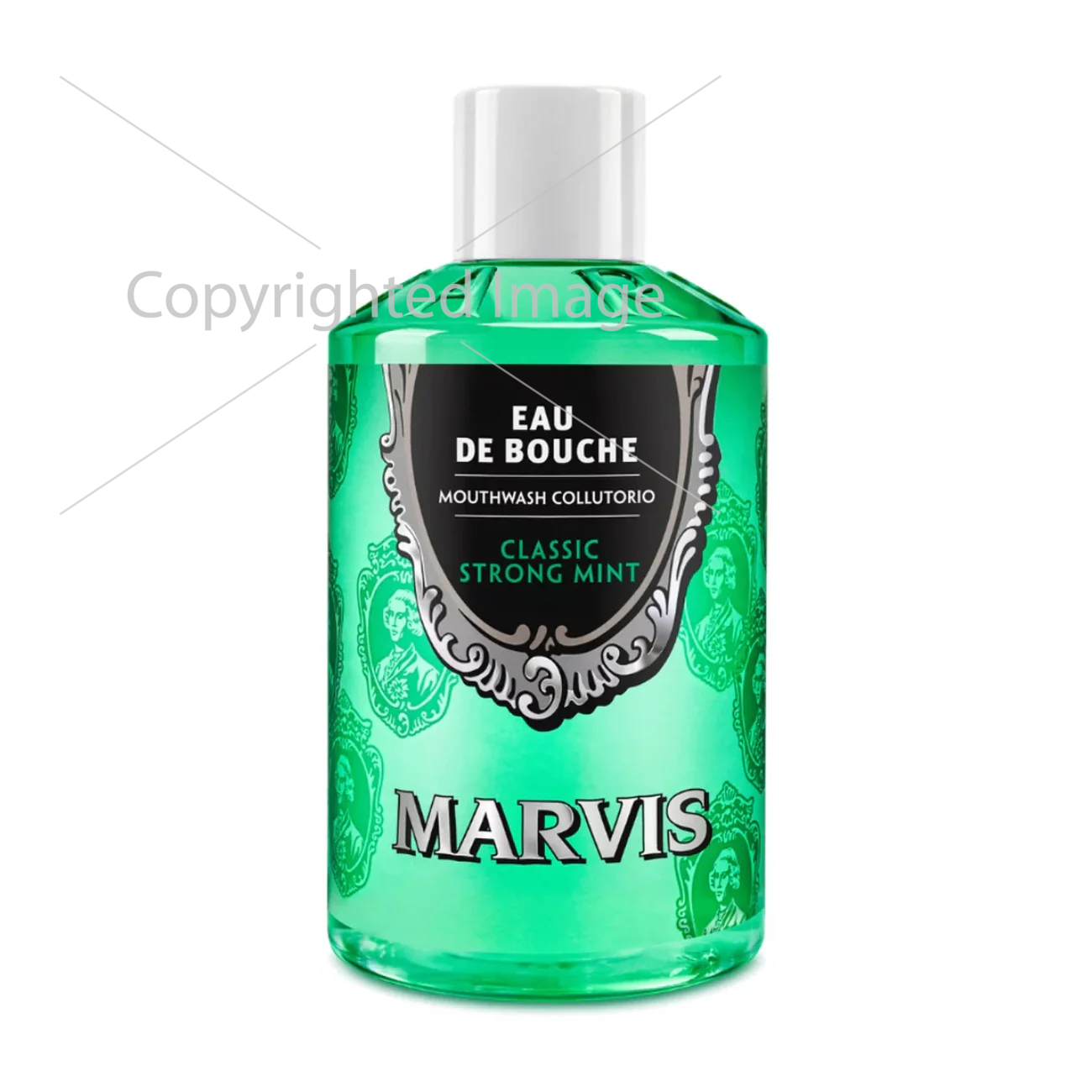 Ополіскувач для порожнини рота Marvis Classic Strong Mint Mouthwash 400ml - інтенсивна м'ятна формула для максимального ефекту свіжості. Швидко нейтралізує неприємні запахи та дарує тривале відчуття прохолоди.