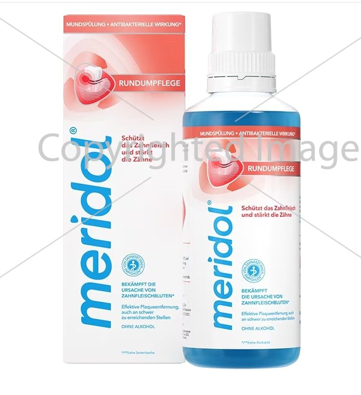 Ополіскувач для ротової порожнини Meridol All-Round Care бореться з причинами кровоточивості та запалення ясен*. Він також захищає ясна, зміцнює зуби та освіжає дихання.