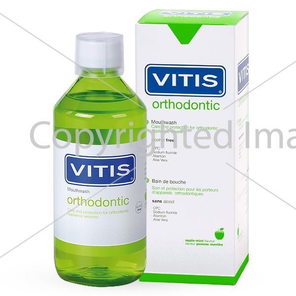 Ополіскувач ротової порожнини VITIS Orthodontic для щоденного використання, який спеціально розроблений для щоденної гігієни порожнини рота ортодонтичних пацієнтів.