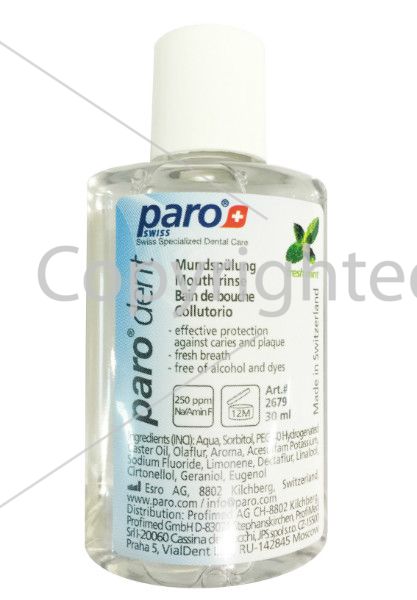 Ополіскувач Paro Dent містить у складі амінофторид у комплексі з фторидом натрію.