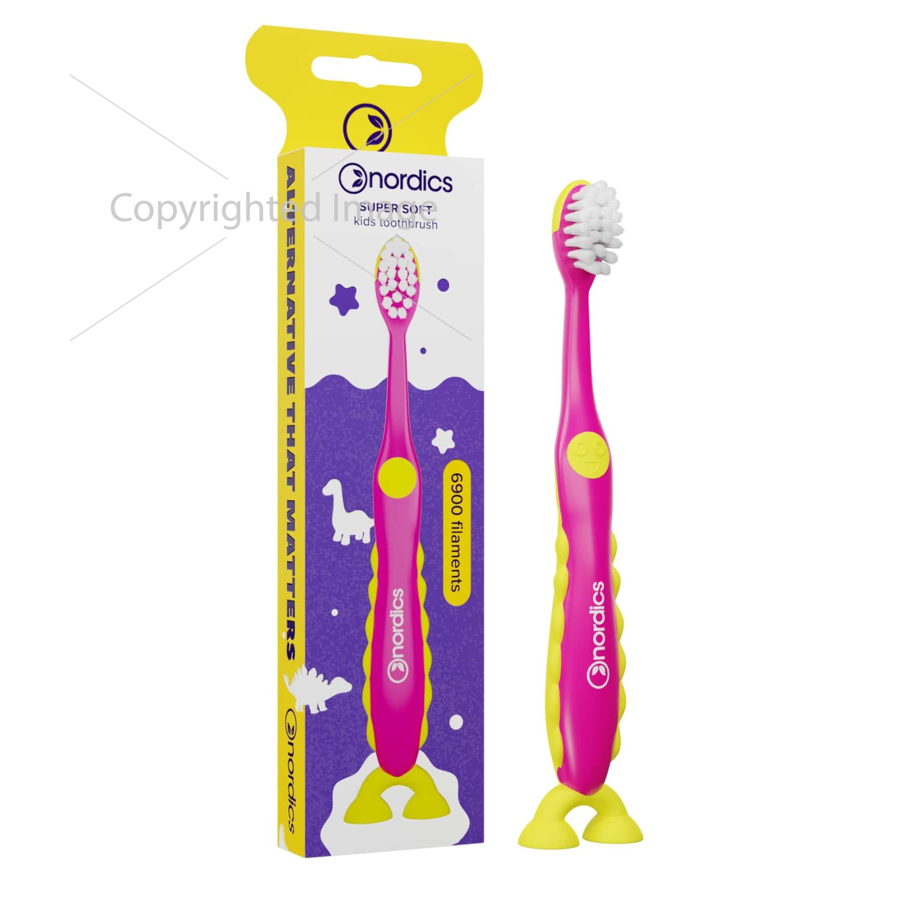 Преміум дитяча зубна щітка Dino 6900 super soft, рожева