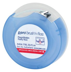 Суперфлос paro® BRUSH'n FLOSS застосовується для чищення брекет-систем, мостоподібних протезів, імплантів та широких міжзубних проміжків.