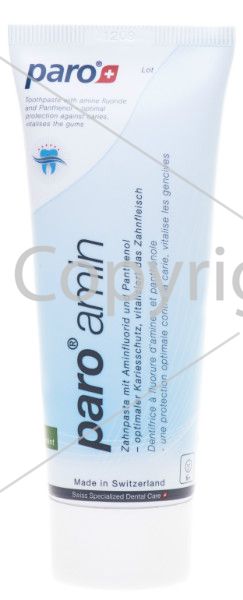 Зубна паста Paro AMIN містить амінофторид у концентрації 1250 ppm.
