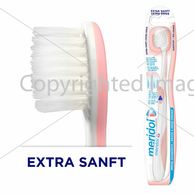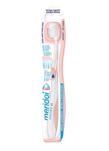 Спеціальна зубна щітка Мeridol EXTRA SOFT оснащена дуже м'якими тонкими кінчиками щетини для особливо ніжного видалення зубного нальоту у разі подразнення чутливих ясен або після хірургічних втручань.