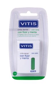 Зубна стрічка VITIS з фтором і м'ятою видаляє бактеріальний наліт і запобігає виникненню карієсу, забезпечуючи при цьому відчуття свіжості.