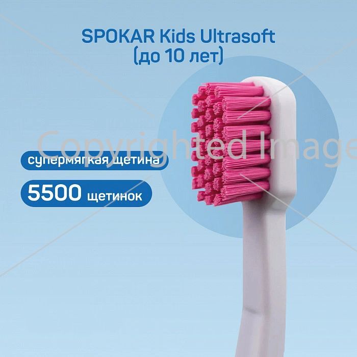 Головка зубної щітки для дітейSpokar XD щільно вкрита 5500 найтоншими волокнами та дбайливо впливає на чутливі дитячі ясна.