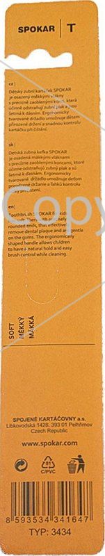 Виготовлена з урахуванням ортодонтичних особливостей дітей віком від 5 до 8 років зубна щітка «Т» від бренда Spokar стане найкращим другом вашої дитини під час щоденної гігієнічної процедури.