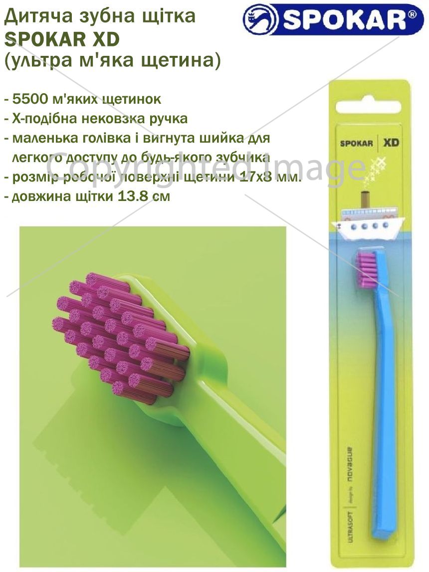 Зубна щітка Spokar XD є збалансованою зубною щіткою з ергономічним, функціональним і продуманим дизайном для дітей, яку вони можуть використовувати від перших зубів до переходу до зубної щітки для дорослих.