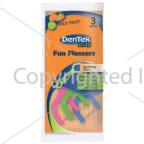 Веселі флоси з тримачами DenTek мають зручний, оптимальний дизайн і форму для ручки дитини і легко дістають до всіх зубів.