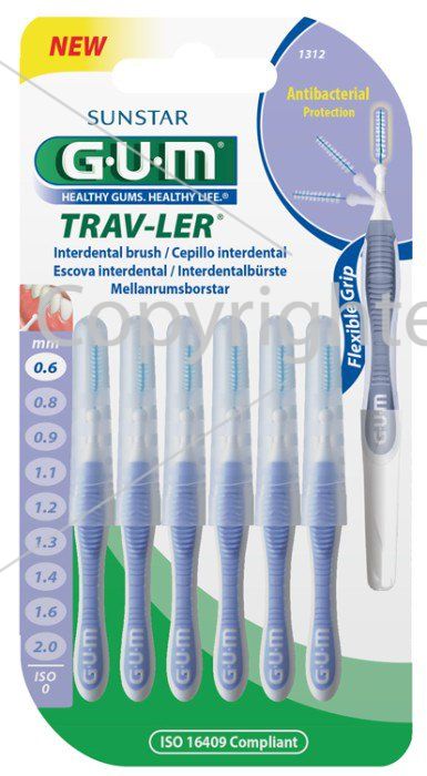 Міжзубні йоржики Gum Trav-Ler є міжзубними йоржиками з хлоргексидиновим покриттям. Таким чином, ця щітка забезпечує антибактеріальний захист протягом 2 тижнів після використання, що зменшує ймовірність швидкого розмноження бактерій та появу всіх супутніх хвороб ротової порожнини.
