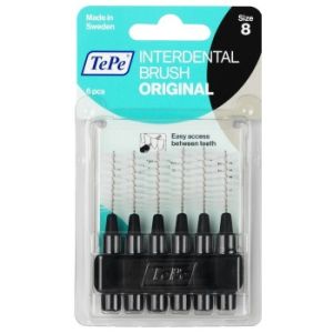 Міжзубні йоржики TePe Original випускаються в 9 розмірах з колірним кодуванням, які підходять як для вузьких, так і для широких зазорів.