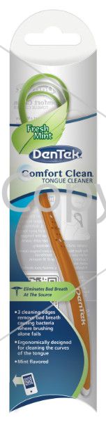 Очищувач язика DenTek Комфортне очищення видаляє джерело неприємного запаху з рота. Завдяки оптимальній і вузькій формі очисника мови, він легко дістає до кореня мови, не викликає блювотний рефлекс.