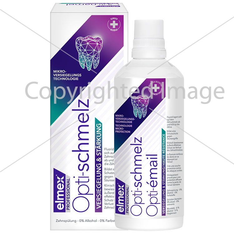 Ополіскувач для ротової порожнини elmex® Opti-enamel PROFESSIONAL SEALING & STRENGTHENING ефективно захищає емаль від деградації та розчинення.