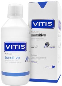 Vitis Sensitive Mouthwash знімає чутливість, відновлює та захищає чутливі зуби. Ця рідина для полоскання ротової порожнини має два. способу дії: