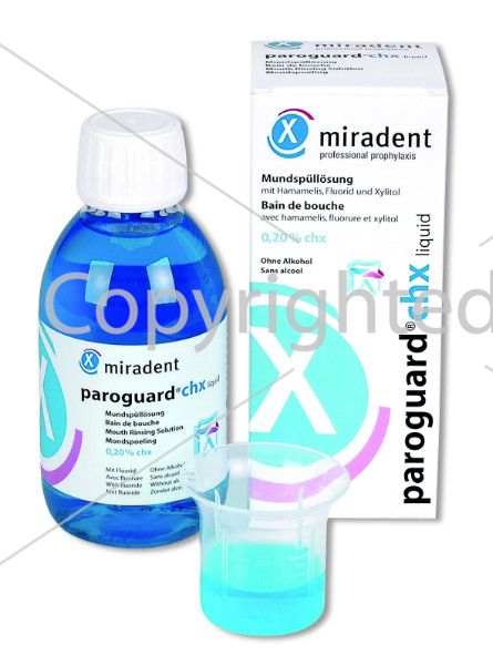 Розчин Paroguard chx - без вмісту алкоголю та ментолу, тому він є щадним, навіть до запалених або роздратованих ясен. Антибактеріальний ефект хлоргексидину зменшує кількість нальоту і запобігає подразненню ясен, ротової порожнини і горла. Гарантується досконале і тривале харчування всього рота та фаренгіальної ділянки, навіть у разі обмеженої гігієни ротової порожнини. Застосовується для лікування початкових стадій пародонти тканинах пародонту