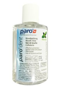Ополіскувач Paro Dent містить у складі амінофторид у комплексі з фторидом натрію.