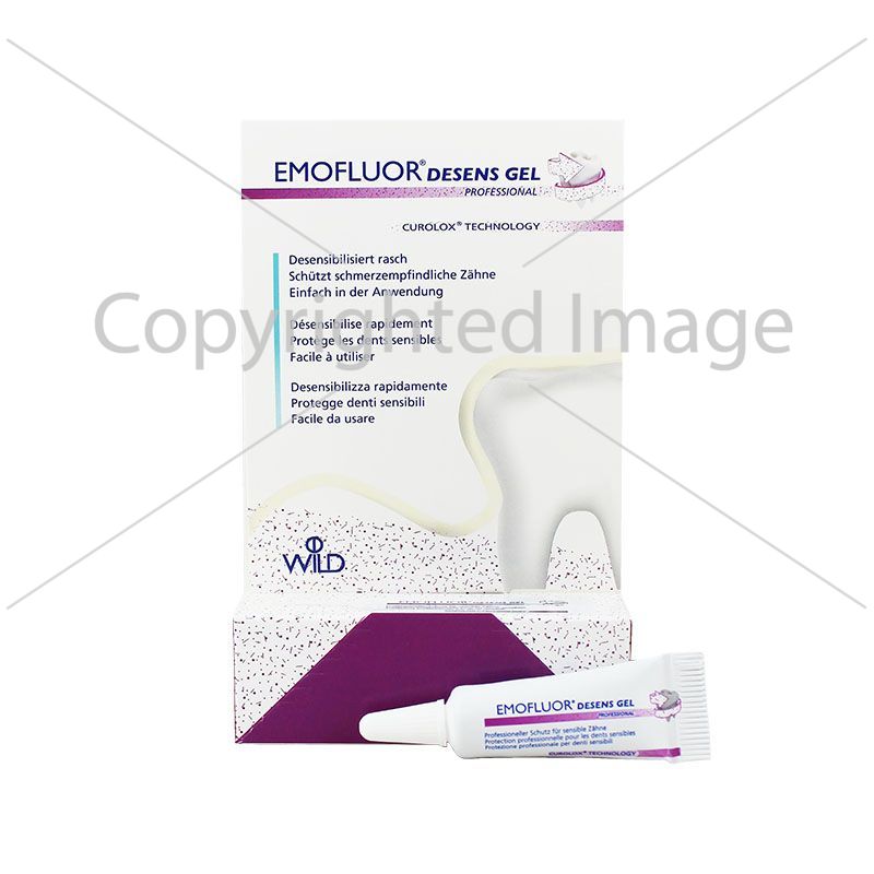 Гель Emofluor Desens, швидко та ефективно захищає чутливі зуби та шийки за допомогою інноваційного захисного бар'єру від подразнень, викликаних теплом, холодом, кислотами та болючим контактом.