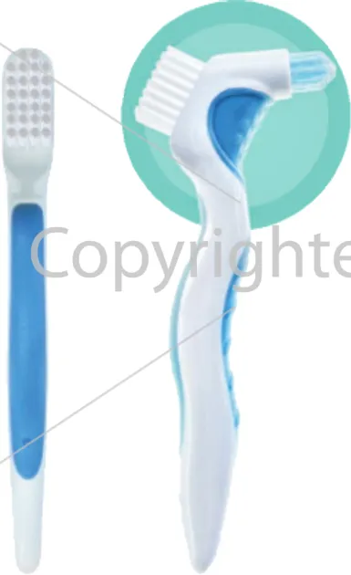 Плоска поверхня забезпечує ефективне чищення поверхні зубних протезів. Конусоподібна щітка чистить дрібні важкодоступні зони.
