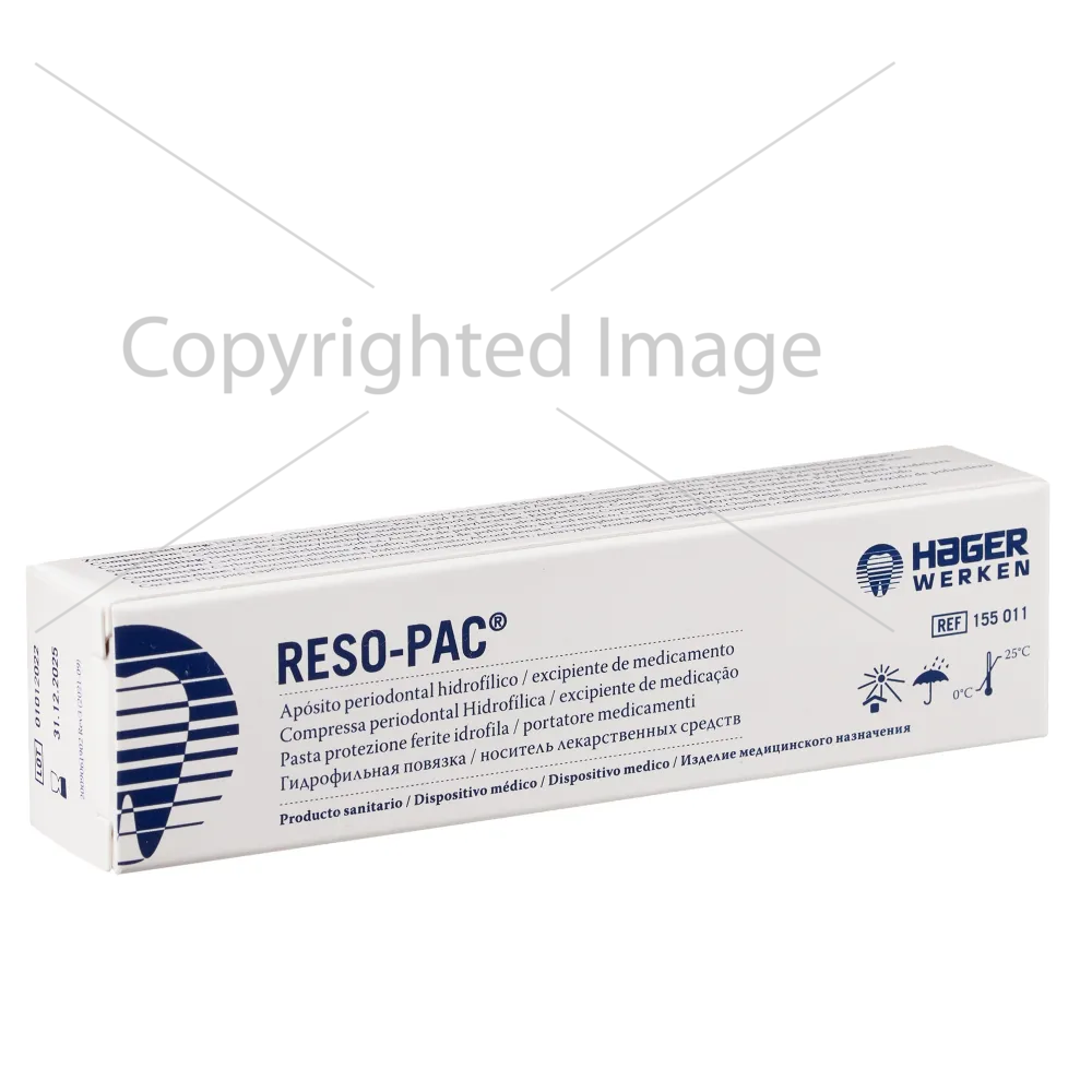 Reso – pac ® – це пов'язка, на основі целюлози, для захисту ран у порожнині рота. Ця пов'язка містить мирру, яка має в'яжучу та гемостатичну дію. Пов'язку можна використовувати як капу для лікарських засобів, кровоспинних засобів або фтор-лаків. Хороша адгезія (прилипання) до тканин ротової порожнини. Саморозчиняється. Гідрофільна.