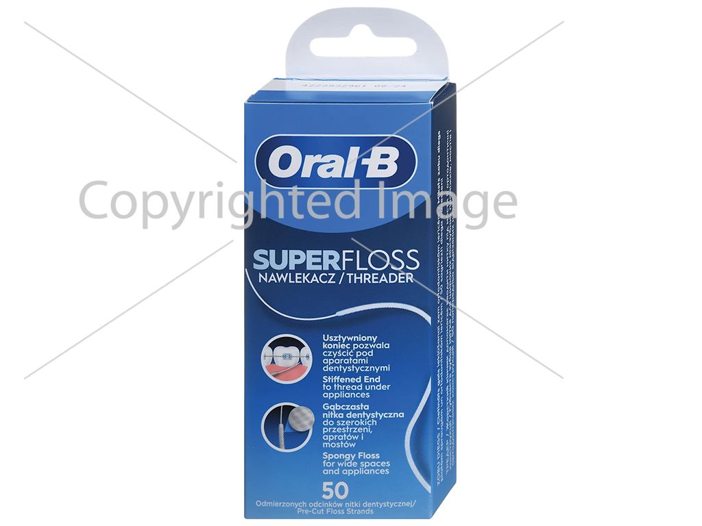 Флосси Oral-B® Super Floss® це ідеальне чищення мостоподібних протезів, брекетів, а також широких міжзубних проміжків. Губчасте волокно, звичайна нитка у поєднанні з тримачем флосса жорстким кінчиком досягають найкращого результату в очищенні зубних проміжків.