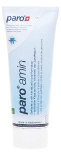 Зубна паста Paro AMIN містить амінофторид у концентрації 1250 ppm.