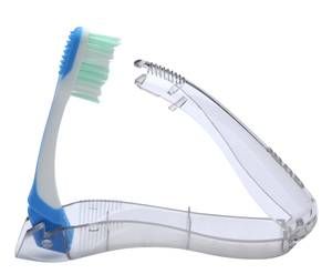 Зубна щітка звичайного розміру, що складається у компактний чохол