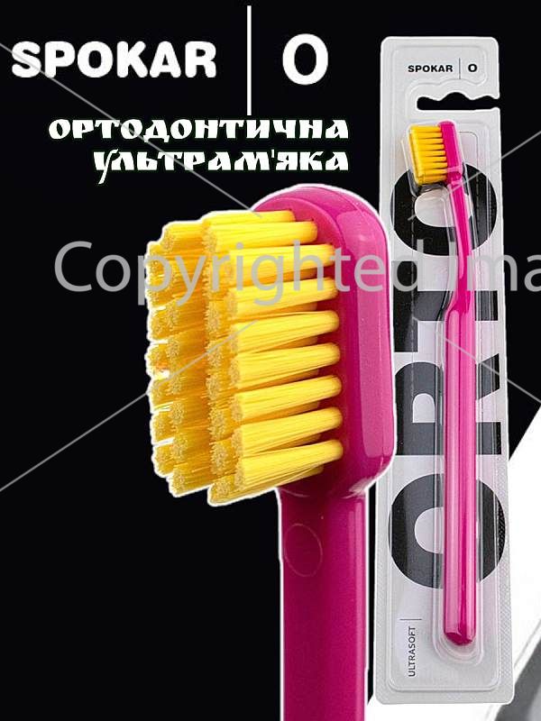 Зубна щітка Spokar Ортодонтична з U-подібним вирізом (8593534342002_Рожево-жовта)