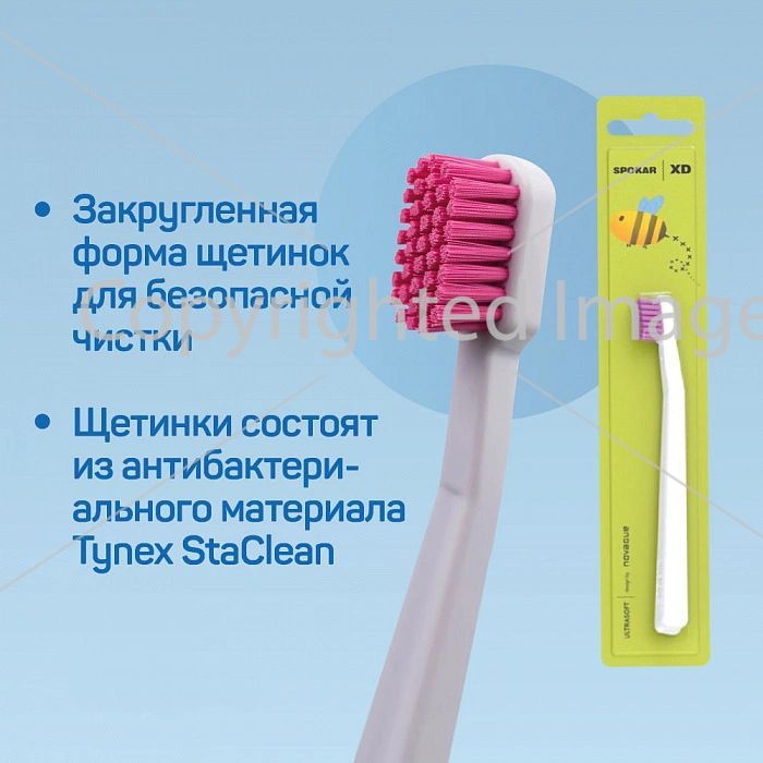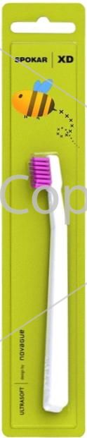 Головка зубної щітки для дітейSpokar XD щільно вкрита 5500 найтоншими волокнами та дбайливо впливає на чутливі дитячі ясна.