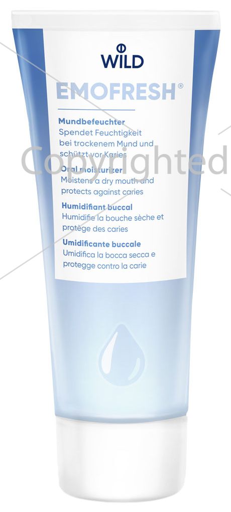 Зволожуючий засіб для ротової порожнини EMOFRESH® виділяє вологу протягом тривалого періоду при виникненні сухості у роті. Захищає та запобігає карієсу. Не містить цукру.