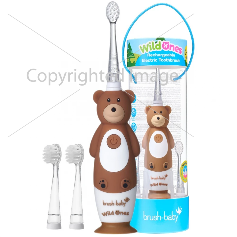 Звукова зубна щітка Brush-Baby від 0 до 10 років Ведмедик 3 насадки